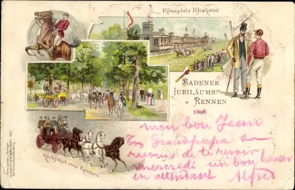 Litho Iffezheim am Rhein, Rennplatz, Badener Jubiläums-Rennen 1898
