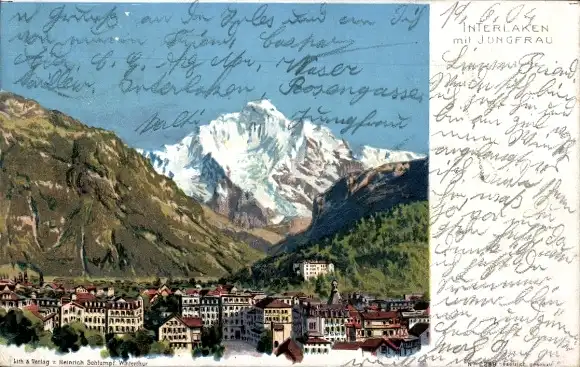 Litho Interlaken Kanton Bern Schweiz, Gesamtansicht, Jungfrau