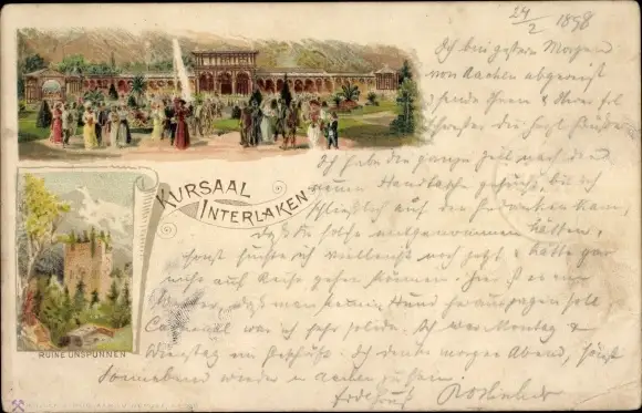 Litho Interlaken Kanton Bern Schweiz, Kursaal, Ruine Unspunnen