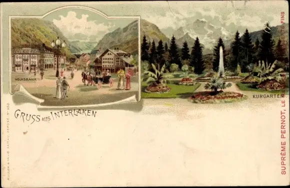 Litho Interlaken Kt. Bern Schweiz, Volksbank, Kurgarten