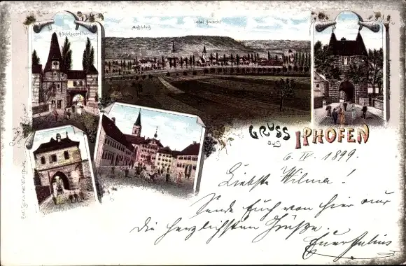 Litho Iphofen in Unterfranken, Panorama, Markt, Tor