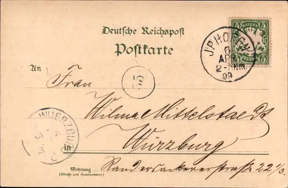 Zustand, siehe Scan, gelaufen, 1899 - ca 14 cm X 9 cm