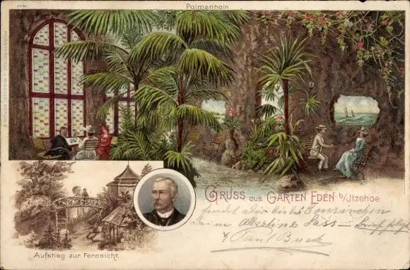 Litho Itzehoe in Holstein, Garten Eden, Palmenhain, Aufstieg zur Fernsicht, Gastwirt Müller