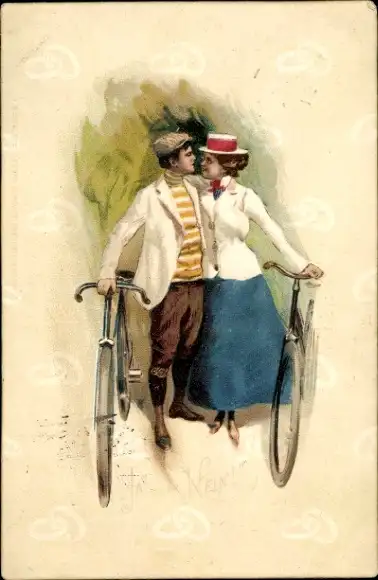 Litho Ja oder Nein, Liebespaar mit Fahrrädern