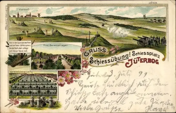 Litho Jüterbog Kreis Teltow Fläming, Zieldorf, Schiessplatz, Barackenlager, Zieldorf