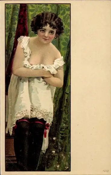 Litho Junge Frau in Unterwäsche, Brust, Schulter, Strümpfe