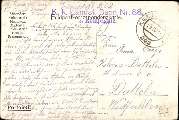 gelaufen 1915, Ecken bestoßen, sonst guter Zustand