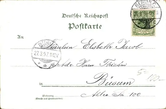 Zustand, siehe Scan, gelaufen, 1897 - ca 14 cm X 9 cm