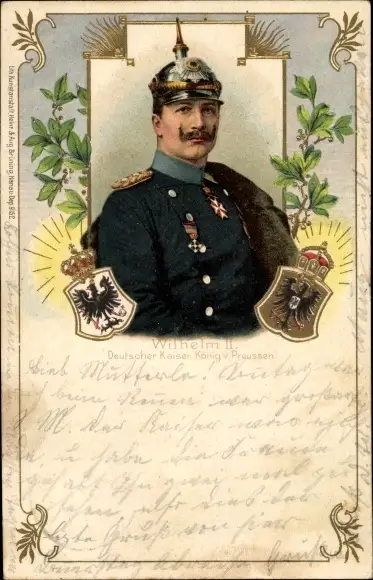 Litho Kaiser Wilhelm II., Wappen, Pickelhaube