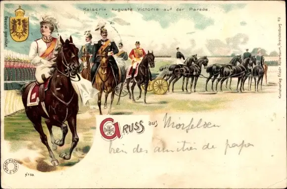 Litho Kaiserin Auguste Viktoria zu Pferd bei der Parade