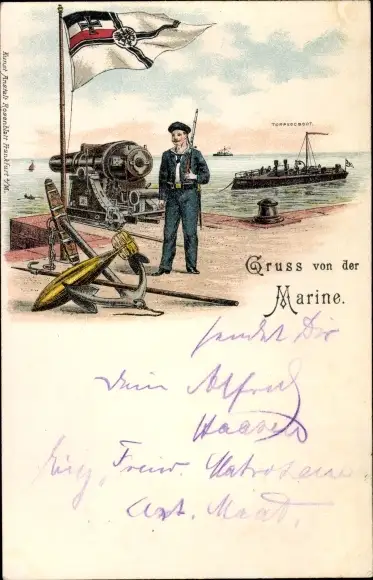 Litho Kaiserliche Marine, Seemann, Fahne, Torpedoboot