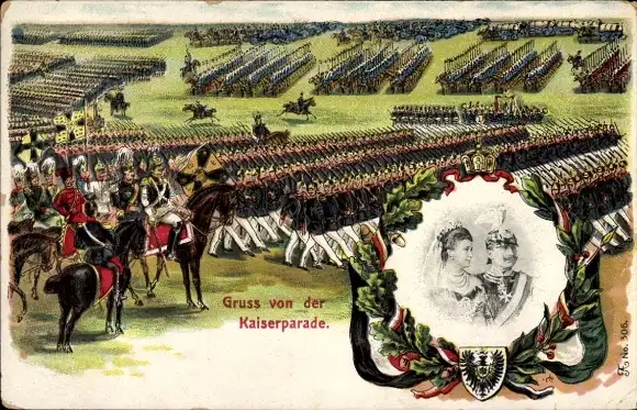 Litho Kaiserparade, Kaiserpaar, Kaiser Wilhelm II