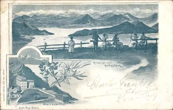 Litho Kanton Uri, Aussicht vom Rothstock, Rigi Staffel, Arth Rigi Bahn