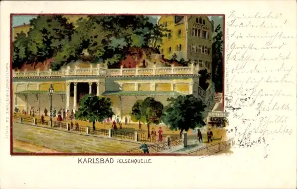 Litho Karlovy Vary Karlsbad Stadt, Promenade an der Felsenquelle