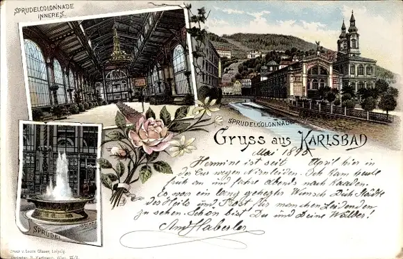 Litho Karlovy Vary Karlsbad Stadt, Sprudel, Sprudelcolonnade