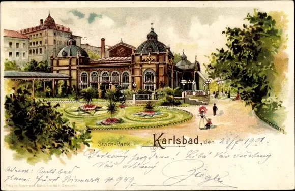 Litho Karlovy Vary Karlsbad Stadt, Stadtpark
