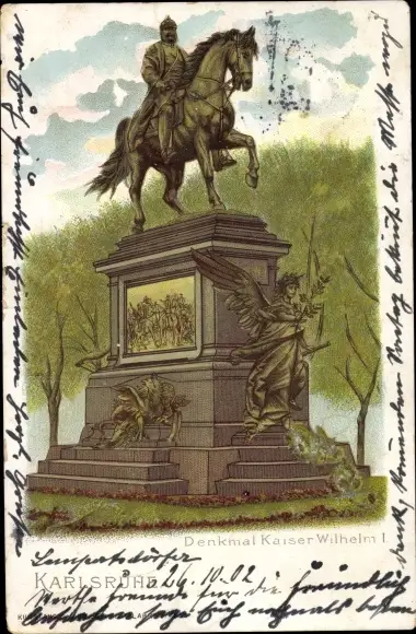 Litho Karlsruhe in Baden, Denkmal Kaiser Wilhelm I.