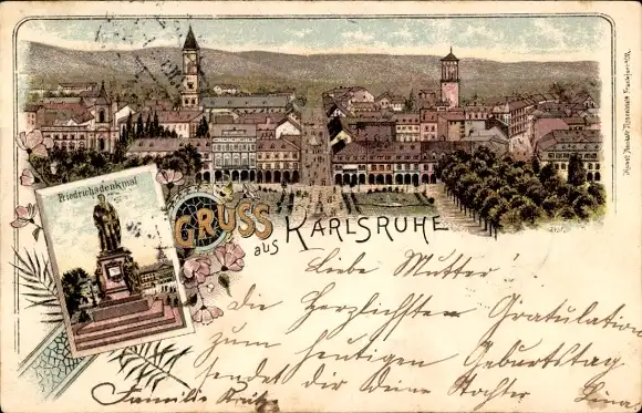 Litho Karlsruhe in Baden, Friedrichsdenkmal, Panorama