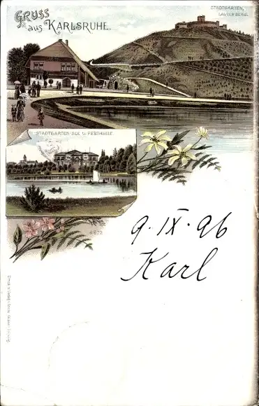 Litho Karlsruhe in Baden, Stadtgarten, Festhalle