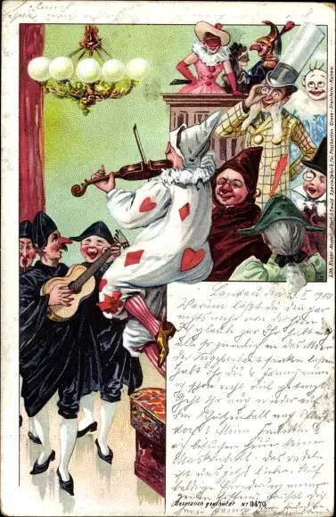 Ansichtskarte, Postkarte, Karneval, Carneval, Fasching, Zupfinstrumente, Gitarre
