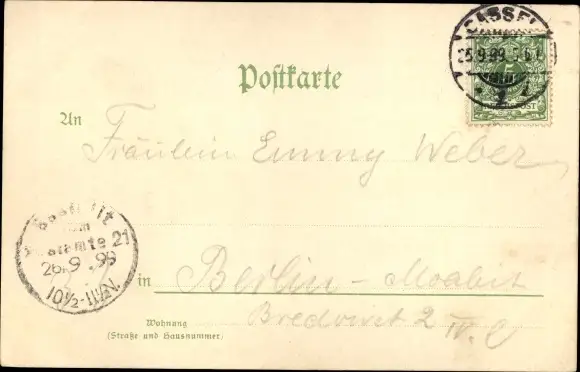 Zustand, siehe Scan, gelaufen, 1899 - ca 14 cm X 9 cm