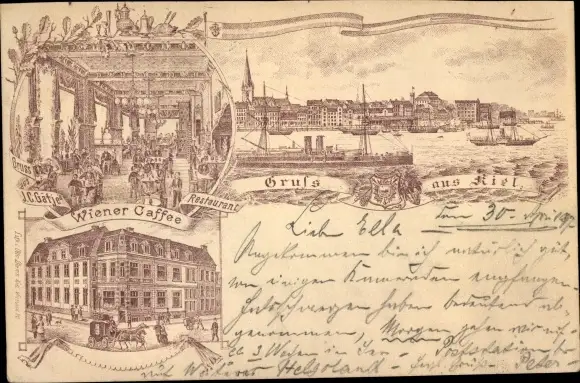 Litho Kiel in Schleswig Holstein, Wiener Cafe, Stadtansicht