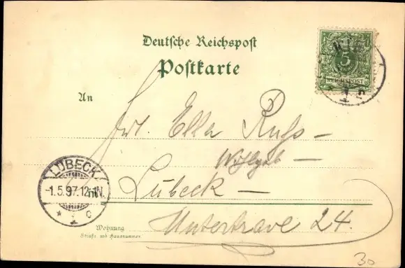 Zustand, siehe Scan, gelaufen, 1897- Inh. J. C. Gätje - ca 14 cm X 9 cm