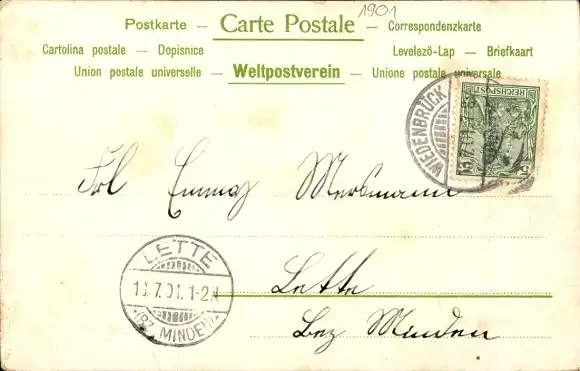 Zustand, siehe Scan, gelaufen, 1901 - ca 14 cm X 9 cm