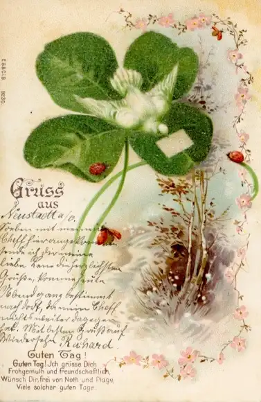 Litho Kleeblatt, Winterlandschaft, Marienkäfer, Taube