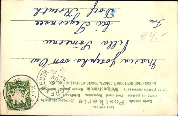 Zustand, siehe Scan, gelaufen, 1902 - ca 14 cm X 9 cm