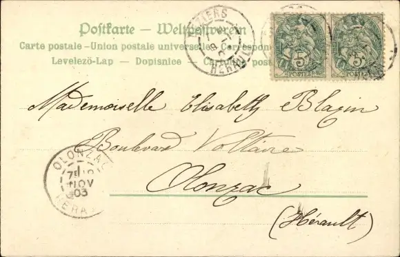 Zustand, siehe Scan, gelaufen, 1903 - ca 14 cm X 9 cm