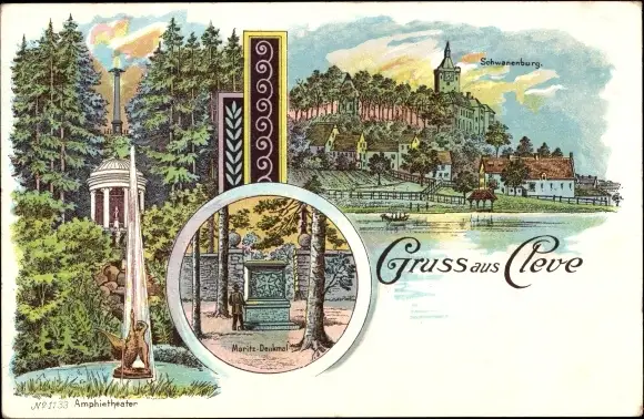 Litho Kleve am Niederrhein, Amphitheater, Moritz-Denkmal, Schwanenburg
