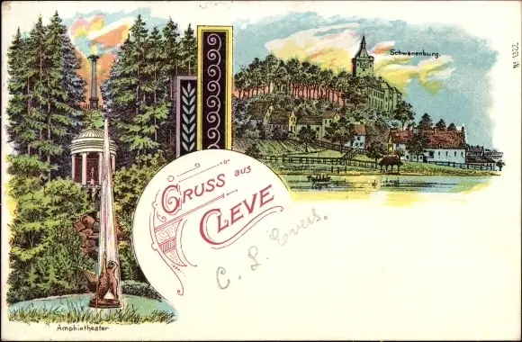 Litho Kleve am Niederrhein, Amphitheater, Schwanenburg