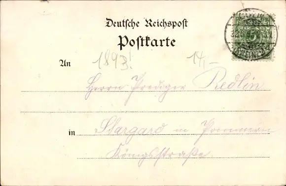 Zustand, siehe Scan, gelaufen, 1893 - ca 14 cm X 9 cm