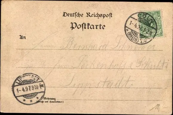 Litho Köln am Rhein, Panorama, Justizgebäude, Denkmal Friedrich Wilhelm II