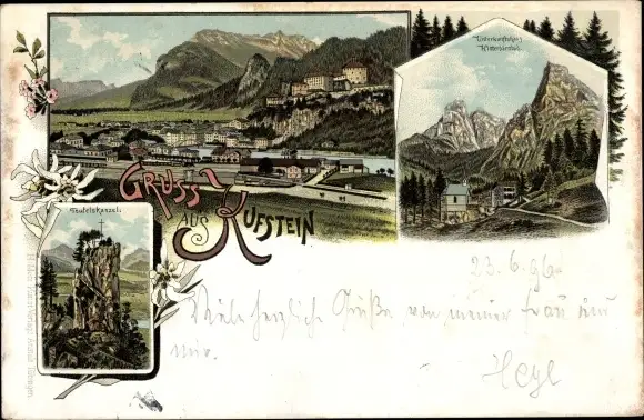Litho Kufstein in Tirol, Teufelskanzel, Unterkunftshaus, Totalansicht