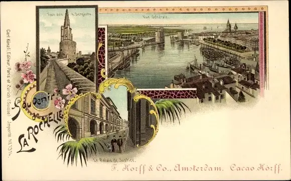 Litho La Rochelle Charente Maritime, Vue générale, Tour des Sergents, Palais de Justice