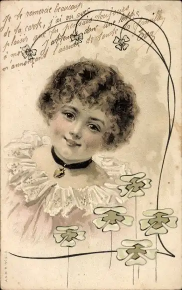 Litho Lächelndes Mädchen, Porträt, Blumen