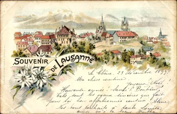 Litho Lausanne Kanton Waadt, Panorama, Berge, Kirche