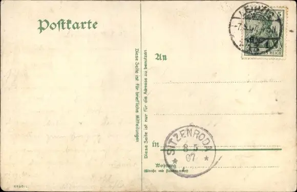 Zustand, siehe Scan, gelaufen, 1907 - ca 9 cm X 15 cm