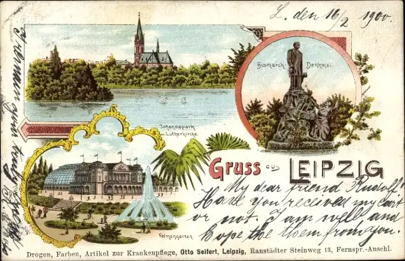Litho Leipzig in Sachsen, Bismarck-Denkmal, Palmengarten, Johannapark, Lutherkirche