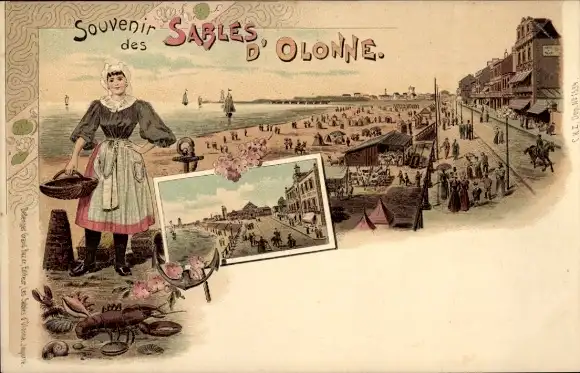 Litho Les Sables d'Olonne Vendée, Promenade, Frau in Tracht