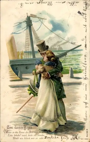 Litho Liebespaar, Hafen, Segelboot, Küssen