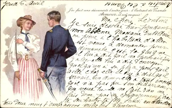 Litho Liebespaar, Soldatenliebe, Junger Mann in Uniform