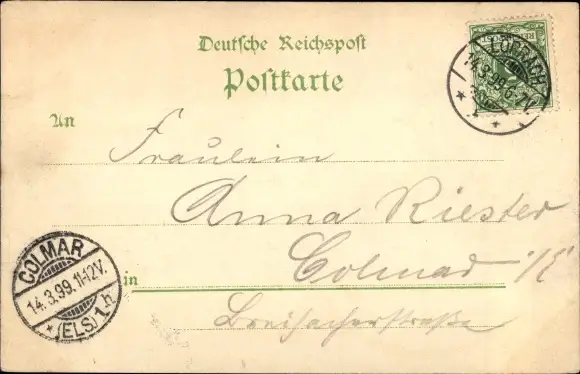 Zustand, siehe Scan, gelaufen, 1899 - ca 14 cm X 9 cm