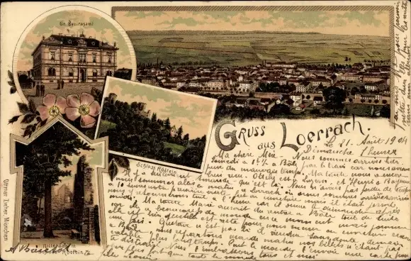 Litho Lörrach in Baden Württemberg, Großes Bezirksamt, Schloss Röttlein, Rittersaal