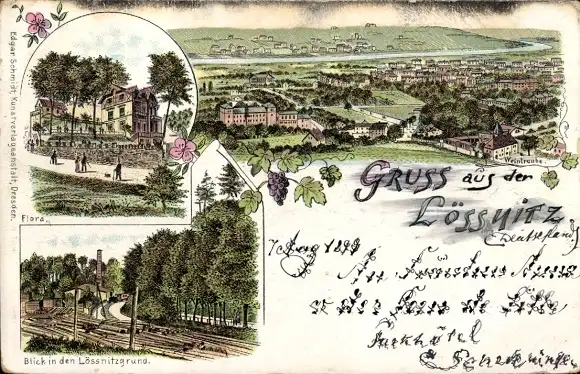 Litho Lössnitz Lößnitz Radebeul Sachsen, Panorama, Flora, Lössnitzgrund