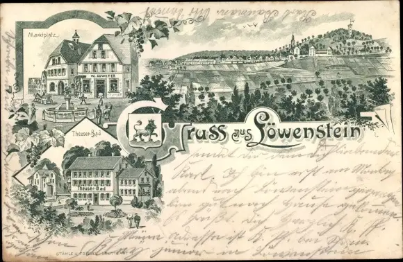 Litho Löwenstein in Württemberg, Marktplatz, Theuserbad, Panorama