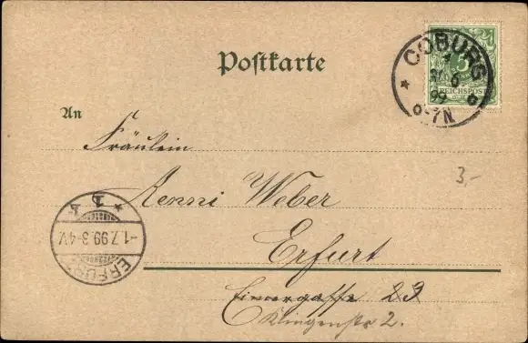 Zustand, siehe Scan, gelaufen, 1899 - ca 14 cm X 9 cm