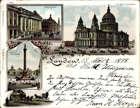 Litho London City England, St. Paul's Cathedral, Nelson Monument